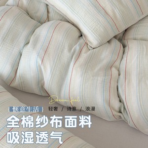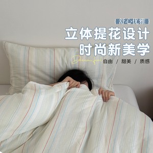 インスコットン二層しわガーゼ4点セットAタイプ母子純綿シンプルストライプキルトカバーシーツ寝具