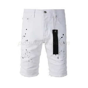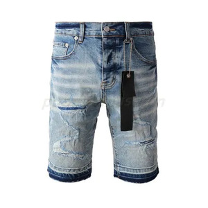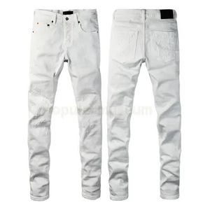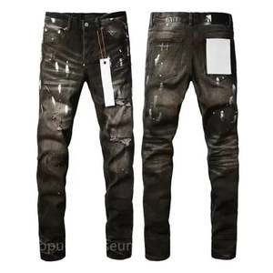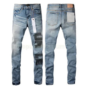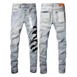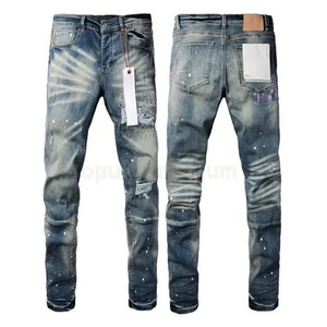 在庫ありの新しいヨーロッパとアメリカのトレンディなブランドメンズレトロダメージ加工猫ひげ削り破れジーンズストレッチスリムフィットパンツ