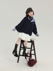 布丁哈鲁童装外套女童撞色上衣2025秋季新款儿童百搭立领美式外套
