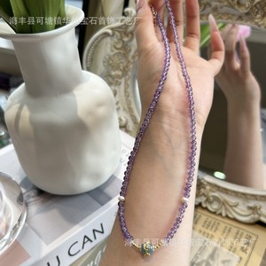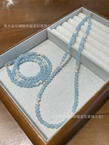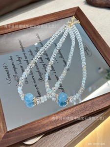 天然冰种海蓝宝紫水晶蓝水翡翠项链夏日风白水晶珍珠南红水晶项链