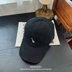 美式复古长颈鹿刺绣棒球帽子女显脸小学院风学生百搭遮阳鸭舌帽男