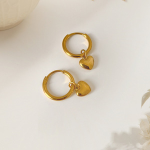 ラブイヤリング、クールスタイル、女性用小さなフープ、女の子用、ゴールデンライト高級チタン鋼、色褪せないフープイヤリング、スナップオンタイプ