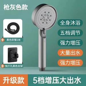 ブラックウォリアー加圧シャワーヘッド5段階調節家庭用シャワーヘッド蓮の葉型シャワーヘッドスタンド付きホース高圧ハンドヘルドシャワーセット
