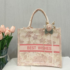 粉包+花朵+BEST WISHENS+背面珍珠挂件;帆布;尺寸30x22x12