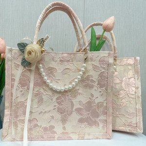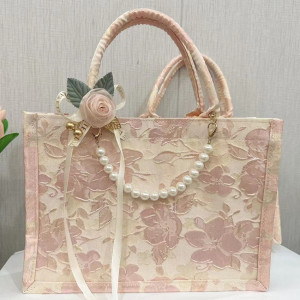 粉色包+珍珠挂件+香槟色花朵;帆布;尺寸30x22x12