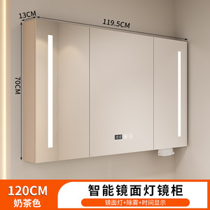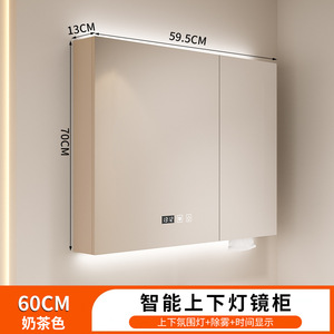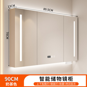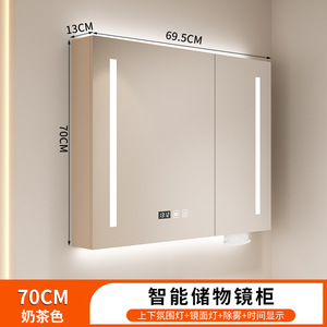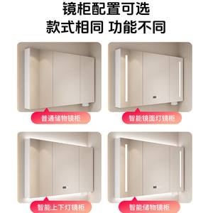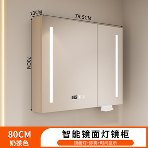 智能镜柜卫生间浴室镜实木浴室储物柜挂墙式单独带灯置物架镜子