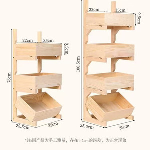 クロスボーダー無垢材三層収納ラック床置き家庭用多層雑貨収納リビングルーム寝室収納収納ラック