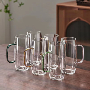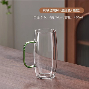 透明玻璃花茶杯彩色手柄高硼硅玻璃单层杯家用大容量绿茶杯