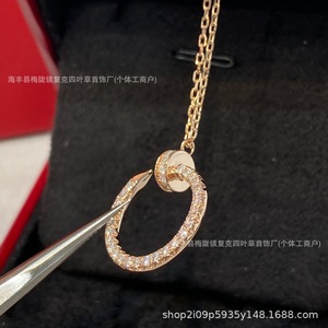 CNC高版卡家钉子项链头尾钻满钻手镶V金银厚镀18K玫瑰金厂家批发