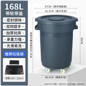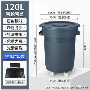 灰色大号圆形垃圾桶户外大容量环卫桶餐厨商用垃圾桶带轮子圆桶