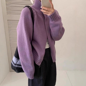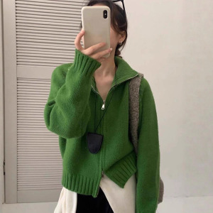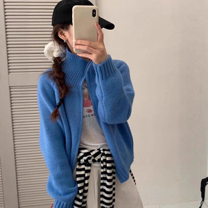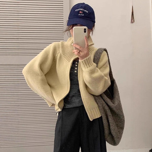 立领毛衣秋冬纯色韩系温柔风软糯百搭休闲宽松针织拉链加厚外套