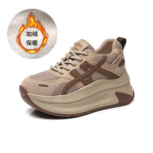 2025 秋と冬の新しいスタイルのインナー高さカジュアル厚底レトロカラーマッチングフォレストシューズメッシュシューズ通気性のあるお父さん靴女性の靴