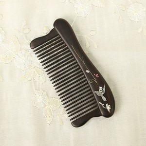 天然紫光檀木梳子手工镶嵌木梳精美礼品雕刻梳子乌木家用彩绘家用