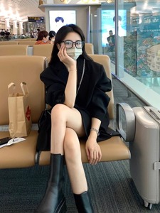 黑色西装外套2025春秋新款宽松休闲廓形大码西服