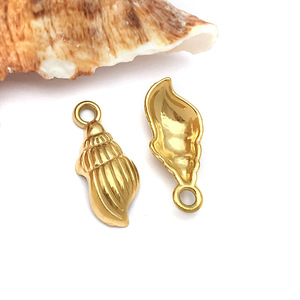T2264-1个8x18x4mm孔径1.9mm真空电镀金色不锈钢海洋系列海螺-0.8g