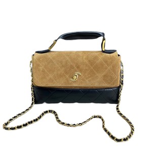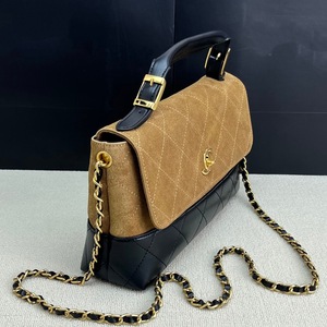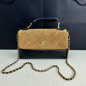 小香风菱格麂皮拼接链条包包手提单肩斜挎女包包通勤又时髦软乎乎
