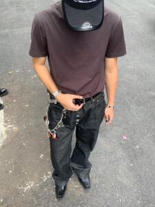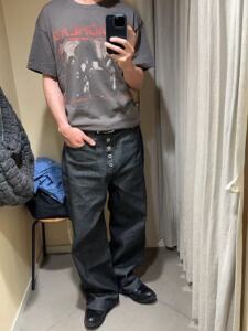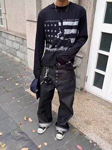 五连扣原牛未脱浆 黑棉羽康14oz 硬挺宽松直筒A字版龙牛仔裤四季