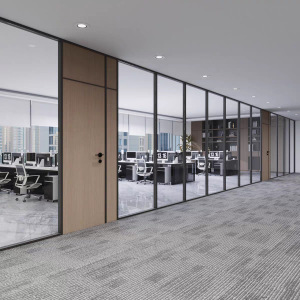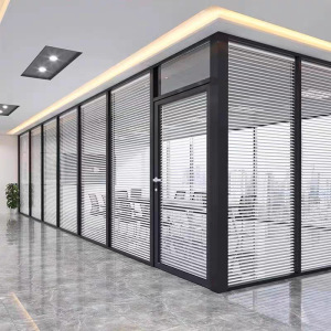 オフィス透明ガラスパーティションベネチアンホテルモバイルパーティションエコウッドドアシンプルなアルミ合金高間仕切り壁