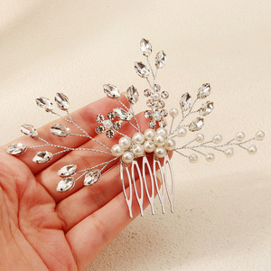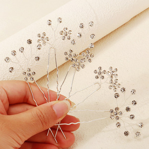 貿易ブライダルヘアアクセサリー、高級ウェディングフォトヘアピン、手作りラインストーンフラワーU字パールヘアピンセット