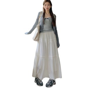 白いアコーディオンスカート2025年秋新作ハイウエストAラインスカート小柄な人向けスリム効果のあるふわふわミディ丈ケーキスカート