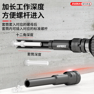 电动扳手加长薄壁细长套筒超长特深12cm薄款12角8/10特长梅花套筒