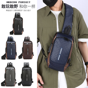 跨境男士防盗胸包防水斜挎包多功能密码锁机车包高级感时尚单肩包