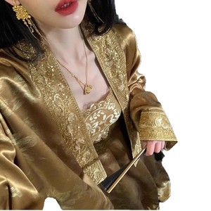 新中式国风女装时尚新款套装外套吊带连衣裙鎏金烫金刺绣改良汉服