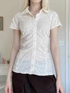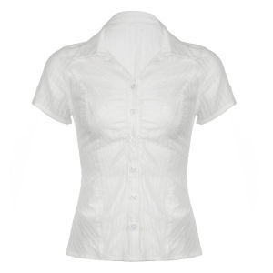 美式肌理纹路POLO领排扣短袖衬衫气质通勤褶皱显瘦百搭休闲上衣