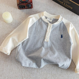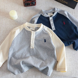 儿童长袖T恤2025春秋新款男童拼色长袖打底衫宝宝日系潮牌Polo衫