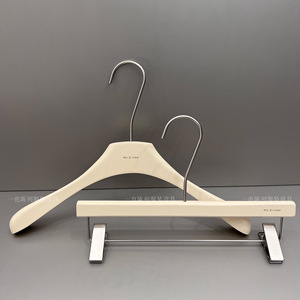 婦人服店無垢材ハンガー衣料品店ベージュ特殊シームレスワイドショルダー滑り止め衣類サポート乳白色オリジナル木製ロゴ