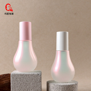 现货40ml灯泡护肤乳液瓶珠光色玻璃按压泵头分装瓶粉底液瓶可定制