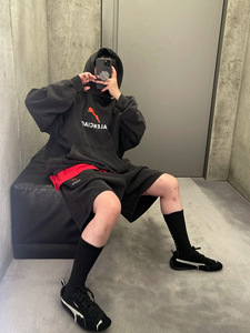 巴黎正确版B家PUM联名豹子字母图案重磅帽衫高版本B潮牌连帽卫衣