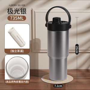 ダブルストローウォーマーカップ、大容量セラミックライナー付きウォーターカップ、女子学生向け、男性向け高見えカーポータブルカップ
