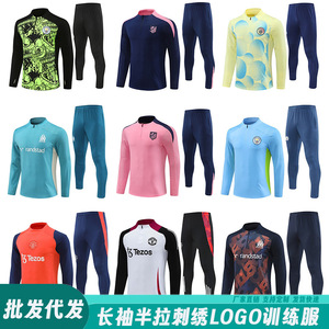 2425 マンチェスター ユナイテッド、マンチェスター シティ、レアル マドリード、マリーズ、ハーフジップ長袖スポーツ スーツ、大人と子供用の秋と冬の刺繍トレーニング スーツ