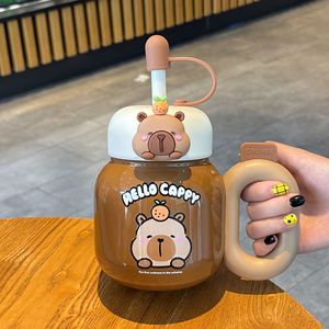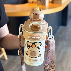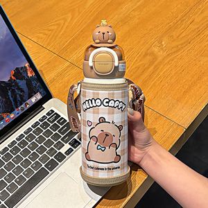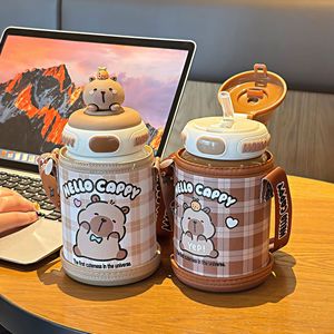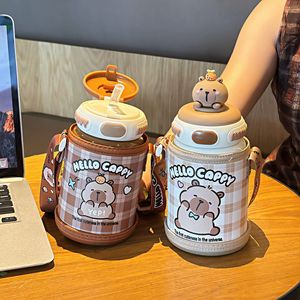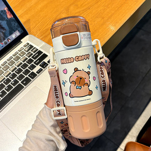 かわいい Kapibara 子供用ポットとカップセット学生魔法瓶カップ調節可能なカップロープポータブルシリコンノズル飲料カップ