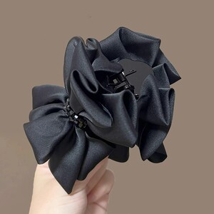 黑色蝴蝶结丸子头抓夹女夏饱满后脑勺发夹盘发鲨鱼夹马尾夹子头饰