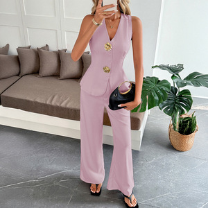 クロスボーダーヨーロッパとアメリカのエレガントなスタイルのファッションベストとズボンの女性のスーツ婦人服2025秋冬アマゾン独立ステーション