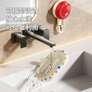 水玉模様の吸盤石鹸箱壁掛け二層排水パンチフリー家庭用漫画浴室石鹸箱収納ラック