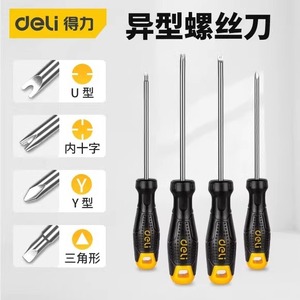 得力三角螺丝刀y型公牛插座专用u形Y十字内三角异形螺丝刀套装