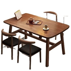 レトロなウォールナット色のダイニングテーブルとダイニングチェアの組み合わせ、家庭用モダンでシンプルな長方形テーブルレンタル、小さなアパートテーブル
