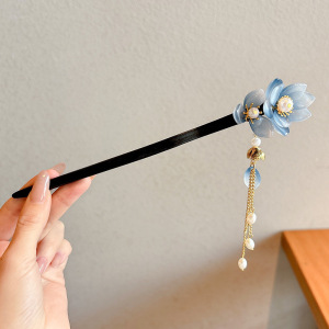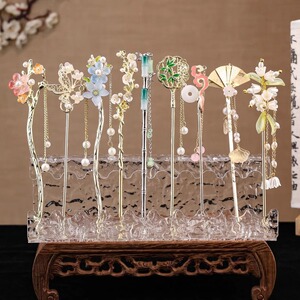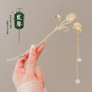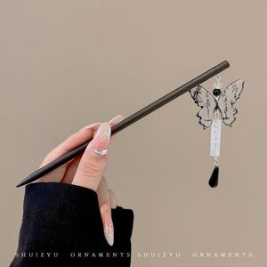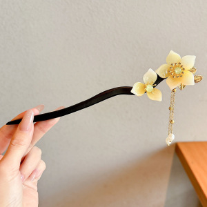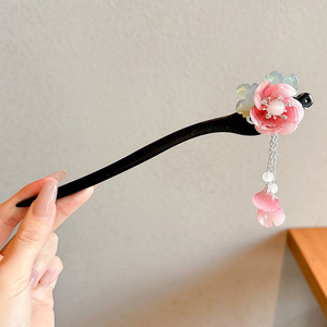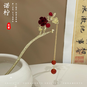 新中式汉服发钗女国风檀木步摇流苏盘发簪子古韵高雅旗袍配饰