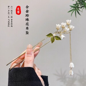 20#梅花粉色单花珍珠流苏发簪(袋装)