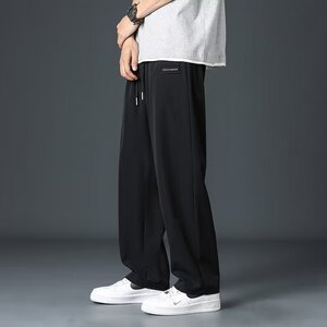 2025 新しいアイスシルクパンツメンズ夏薄いハイストリートドレープストレートワイドレッグパンツ夏のスポーツカジュアルパンツ