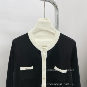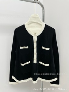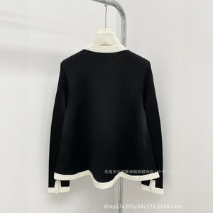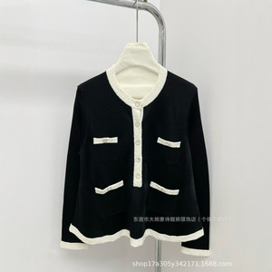 顶版CH香家秋冬款针织衫长袖小香风高级气质开衫经典撞色圆领女