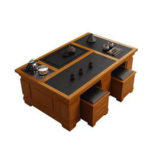 モダンなロックボードカンフー無垢材コーヒーテーブルティーセットオールインワンリビングルームファイアストーンコーヒーテーブルホームオフィスティーテーブル