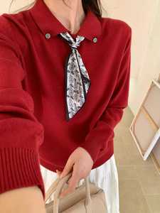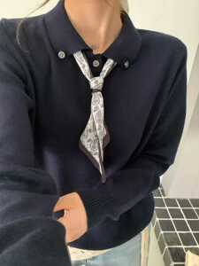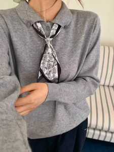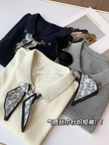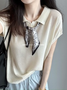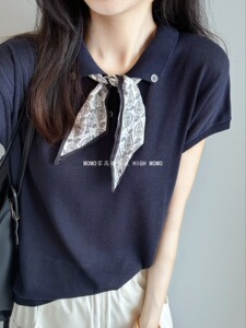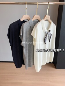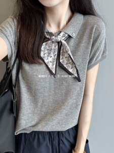 テンセル麻ニット半袖Tシャツ レディース エレガント MIU風 シルクスカーフ付き ポロ襟 涼しく快適 着痩せ効果のあるトップス