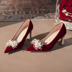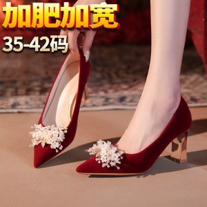 【Y-919-2】大码婚鞋秀禾新娘鞋红色尖头粗跟高跟鞋胖脚宽脚女鞋