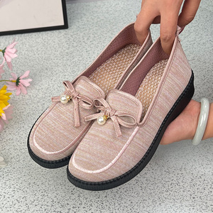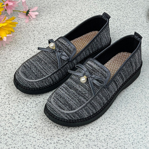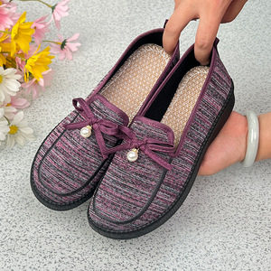 春夏百搭软底一脚蹬飞织老北京布鞋休闲平底透气中老年妈妈鞋