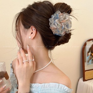 超仙网纱花朵发夹女法式高级感后脑勺盘发抓夹大号鲨鱼夹子头饰