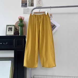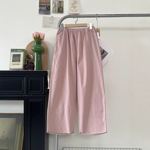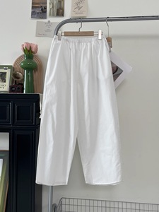 [自由日记]简约百搭纯色松紧腰宽松休闲裤裤子简约气质慵懒花苞裤